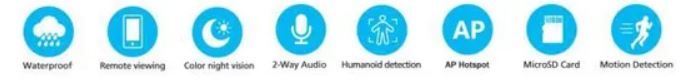 Caméra Surveillance WiFi Extérieure, 1080P, Vision Nocturne Couleur 30M, Détection de Personne AI, Suivi Intelligent, Étanche IP66, Audio Bidirectionnel |